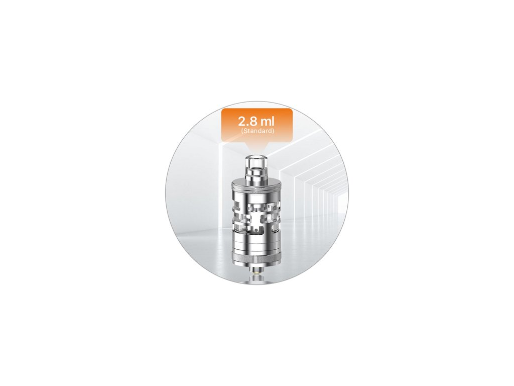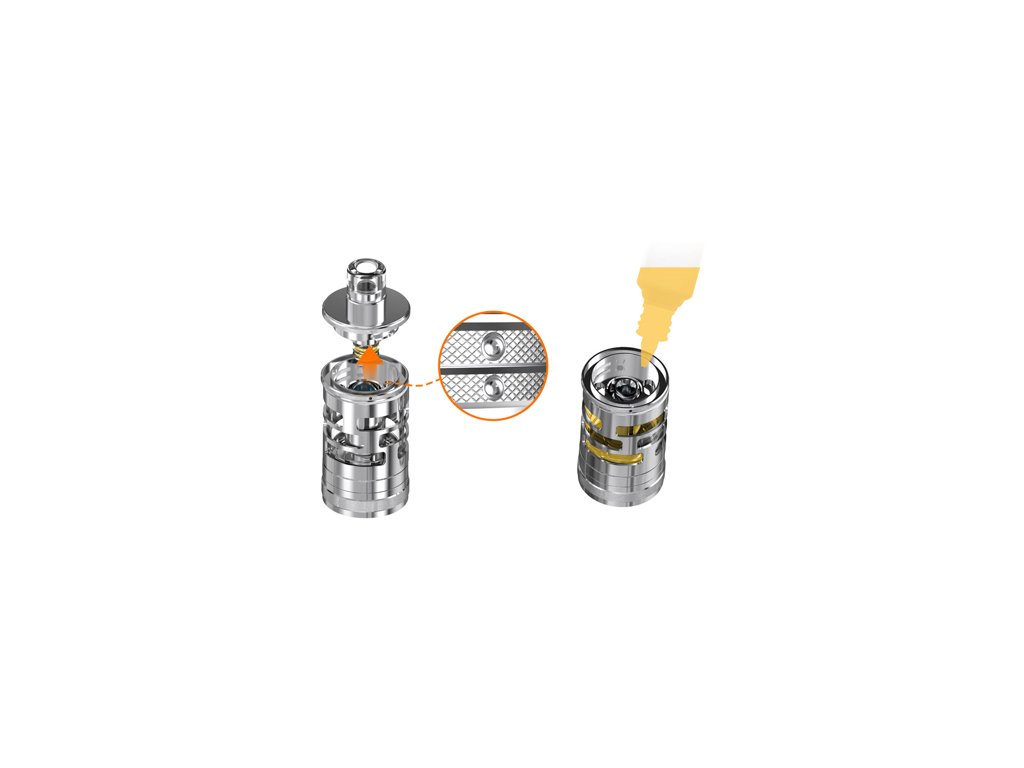 Samotný tank atomizéru nabídne objem 2,8 ml. S touto kapacitou si užijete dlouhé hodiny nerušeného vapování bez potřeby plnění. V případě plnění vás potěší přítomnost jednoduchého bajonetového plnícího systému. Jednoduše tak pootočíte vrchním uzávěrem a vysunete ho nahoru. Během pár vteřin máte naplněno a můžete znovu začít vapovat.