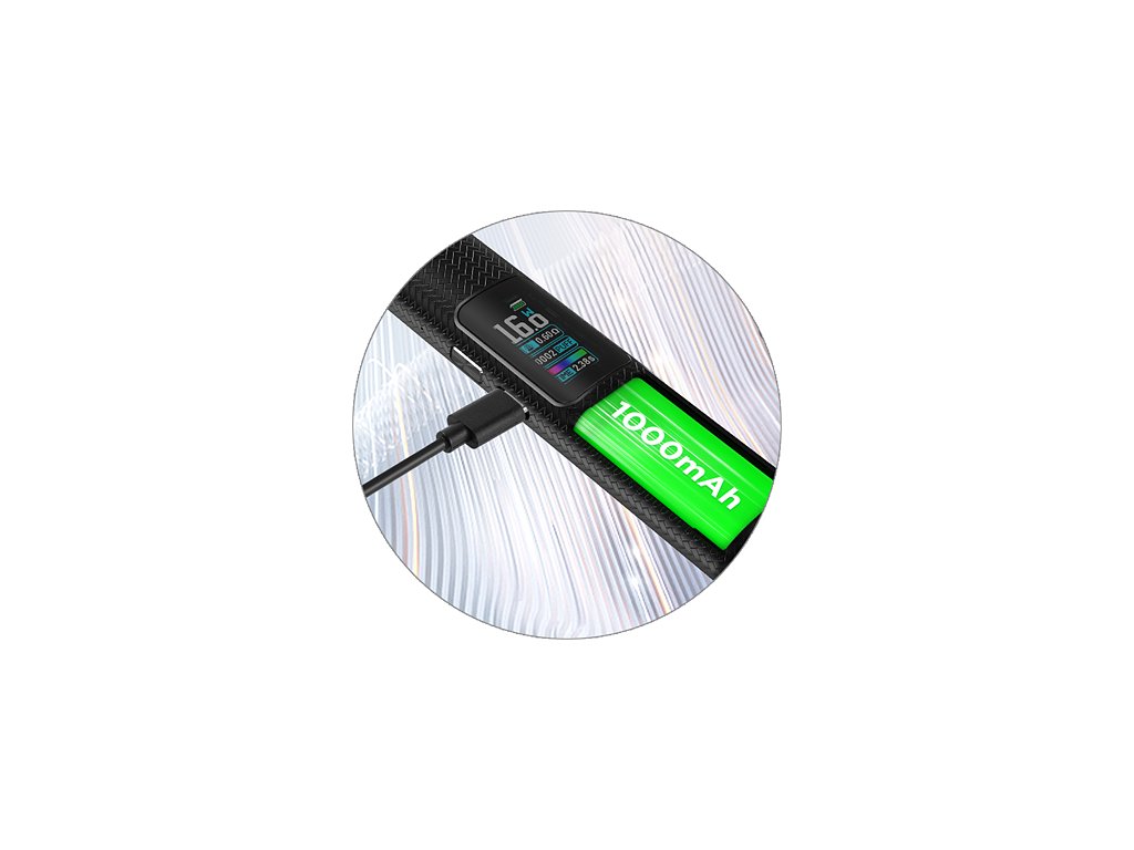 V jádru zařízení se nachází integrovaná baterie s obrovskou kapacitou 1000mAh pro dlouhé hodiny intenzivního vapování s minimem nabíjení. V případě nutnosti potom stačí pouze připojit USB-C kabel a baterii si můžete kdykoliv dobít. Lze dobíjet proudem až 1A.