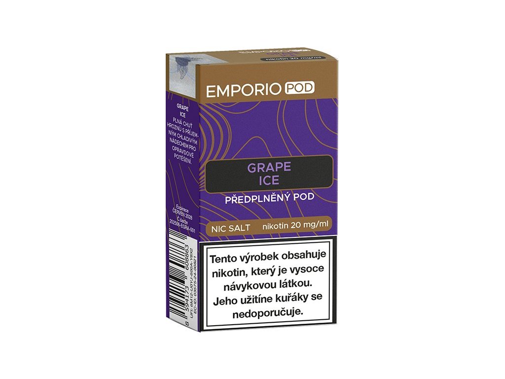 Osvěžující ledové hroznové víno... Předplněné cartridge EMPORIO POD obsahují 2ml SALT liquidu o síle nikotinu 20mg. Poměr 50VG/50PG