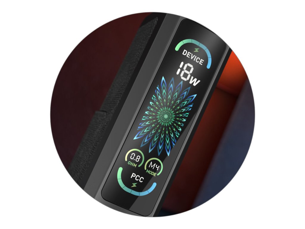Hlavní předností powerbanky je přítomnost obrovského celobarevného displeje pro pohodlné nastavení a zjištění všech potřebných informací. Displej je krásně čitelný a s uživatelským prostředím nebudou mít vůbec žádný problém ani naprostí začátečníci v oblasti vapování.
