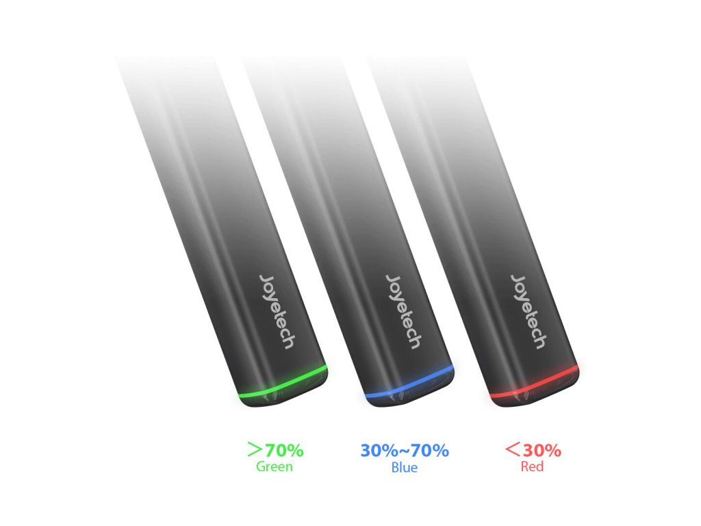 Pokud nemáte zrovna při ruce powerbanku, nebo zkrátka volíte raději používání pouze samotného těla e-cigarety, nemusíte se obávat, že byste si nedokázali rychle a snadno ověřit aktuální stav baterie. Ve spodní části těla se totiž nachází praktická LED indikace se třemi různými barvami, ty se mění na základě aktuální procentuální kapacity baterie. Vždy tak poznáte, kdy je čas e-cigaretu dobít.