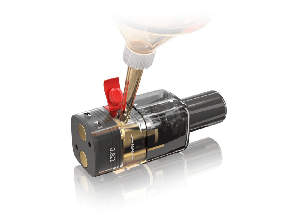 Joyetech Exceed PCC Kit přichází s novým typem stejnojmenných cartridgí. V základním balení na vás čeká cartridge s odporem 0,8 ohm pro optimálně tuhý MTL potah, který bude vyhovovat většině uživatelů. Praktické je potom také plnění, v boční části se nachází tradiční silikonová záslepka, po jejímž odkrytí si můžete cartridge naplnit e-liquidem až do celkového objemu 2 ml.