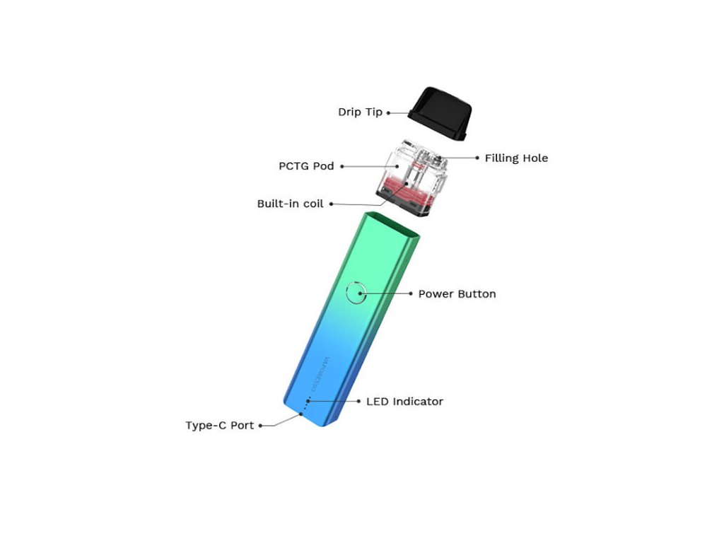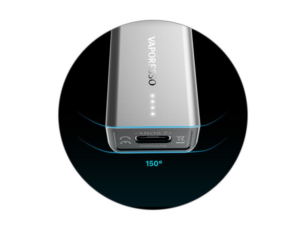 Vaporesso XROS 2 Pod Kit je druhou generací populární e-cigarety XROS. Přináší všechny oblíbené prvky z původního modelu, ovšem nabídne také celou řadu nových vylepšení. Nesmí chybět minimalistické designové zpracování, krásně zpracovaná konstrukce a řada barevných provedení. Kovové tělo s rozměry 112,2 x 23,4 x 13,4 mm skvěle padne do ruky a pohodlně se používá. Pro spínání slouží buď tlačítko v přední části, případně systém plně automatického spínání potahu, kdy stačí jen přiložit ústa k náustku a potáhnout. Uvnitř těla se nachází integrovaná baterie s kapacitou 1000 mAh, která se postará o dlouhé hodiny nerušeného provozu bez potřeby dobíjení. V případě nutnosti pak stačí připojit USB-C kabel a baterii můžete kdykoliv dobít proudem až 1 A. Ve spodní části pak najdete soupravu LED diod, které indikují aktuální stav baterie, o jejím stavu tak budete mít neustálý přehled.