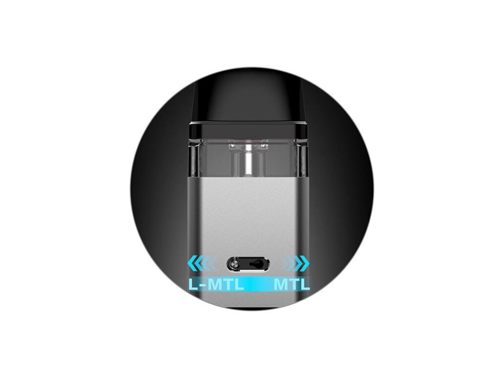 V zadní části se nachází přepracovaný a vylepšený airflow systém. Najdete zde speciální posuvník, jehož posouváním do určitého směru ovlivníte výslednou tuhost potahu. Na výběr tak máte mezi volnějším a utaženějším MTL potahem. Tato regulace umožňuje naprostou kontrolu nad přísunem vzduchu do cartridge, výslednou tuhost potahu si tak přizpůsobíte přesně svým představám.