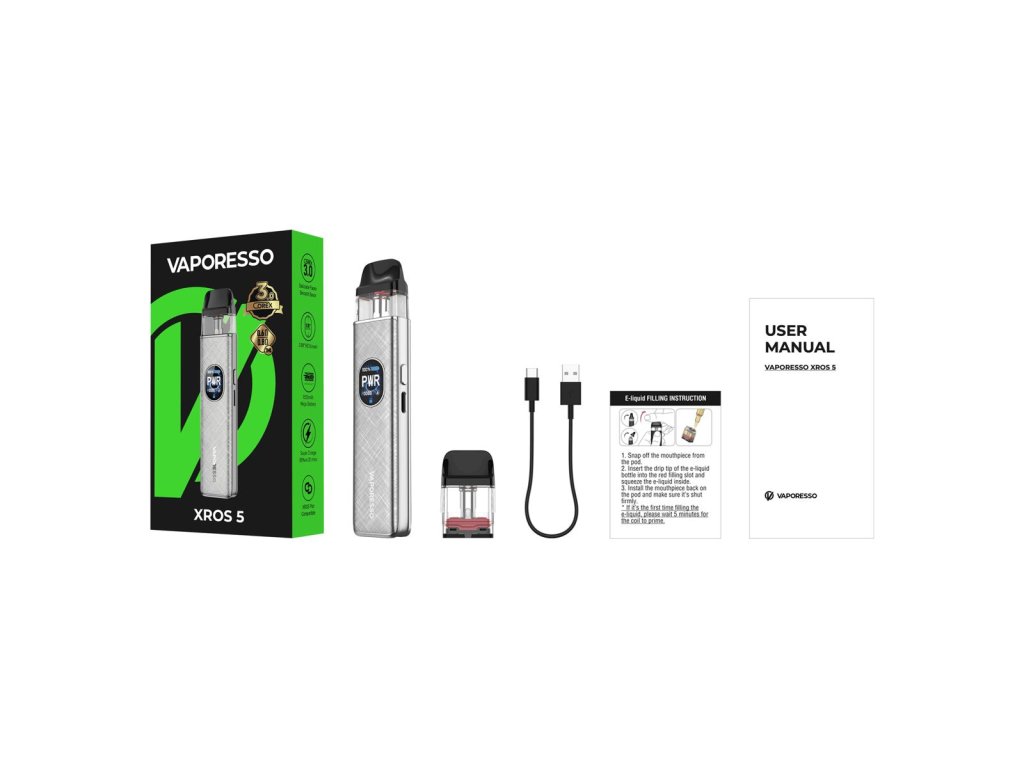 Vaporesso XROS 5 Pod Kit je již pátou generací legendární e-cigarety pro všechny nadšence do MTL a RDL potahu, kteří hledají profesionální požitek z vapování a ideální kousek pro svůj životní styl. Model je tentokrát poháněn vysokokapacitní integrovanou baterií 1500mAh s podporou extrémně rychlého super charge nabíjení 3A. Vylepšená a pokročilá technologie COREX 3.0 vám zajistí konstantní a stabilní reprodukci bohaté chuti, která je delikátní a jemná doslova při každém potahu. Nastavitelná úroveň intenzity žhavení a manuální regulace airflow zajišťují velice jednoduchou a praktickou uživatelskou obsluhu. Se zakulaceným HD displejem a šesti nastavitelnými schématy navíc zařízení poskytne uživatelům zábavné a interaktivní používání. Vaporesso XROS 5 Pod Kit zdárně navazuje na své předchůdce a přináší zase něco nového