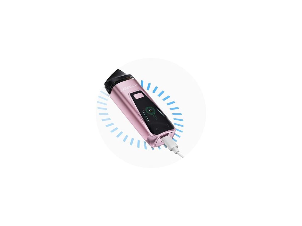 Pokud budete i přes solidní výdrž e-cigarety nuceni vyhledat nabíječku, v ten moment oceníte podporu rychlého nabíjení proudem až 5 V/1.6 A přes konektor USB-C. Za pouhých 20 minut je baterie schopna se dobít až na 50 % kapacity a vy tak budete moci obratem pokračovat ve vapování.