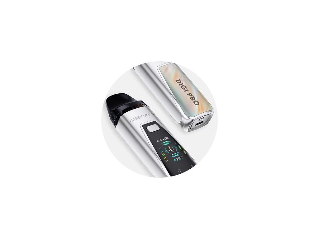Novinka GeekVape DIGI PRO kombinuje vysoký výkon se špičkovými funkcemi a je předurčena pro širokou škálu vapingových stylů. Integrovaná rychlonabíjecí baterie o kapacitě 2000 mAh poskytuje stabilní výstupní výkon až 40 W a mimořádně dlouhou výdrž na jedno nabití. Užívat si budete také obrovský objem 5ml cartridge, oslňující 0.96” displej a tři režimy výkonu doprovázené barevnými animacemi. Díky bleskové odezvě žhavení a inovovanému typu cartridge J Series poskytuje tato e-cigareta naprosto strhující zážitek z vapingu.