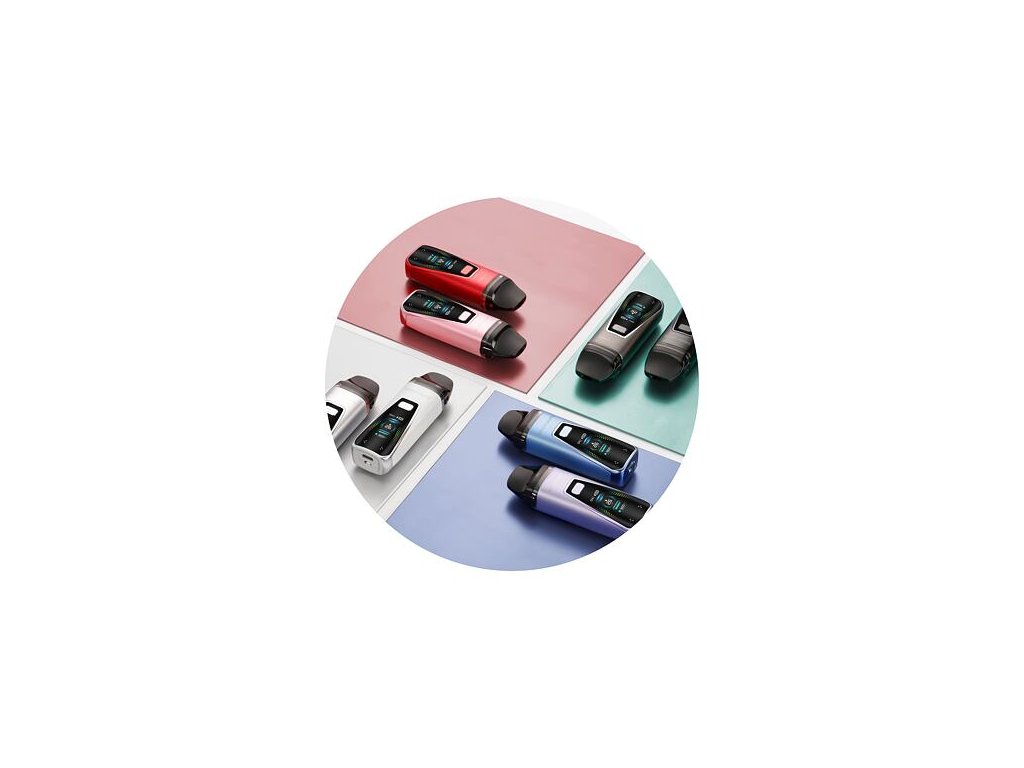 Nepřehlédnutelnou dominantou e-cigarety je multibarevný displej o úhlopříčce 0.96 palce. Jeho jemné rozlišení a živé barvy jsou opravdovou pastvou pro vaše oči. Displej poskytuje přehledné informace o aktuálním výkonu, zvoleném režimu, odporu cartridge, počtu potahů a stavu baterie. Každá změna nastavení pomocí dotykových tlačítek je navíc doprovázena povedenými animacemi, které dozajista udělají dojem i na vaše okolí.