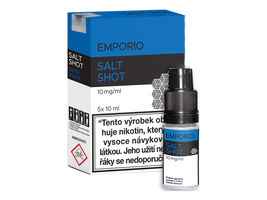 Booster Emporio SALT SHOT s nikotinovou solí pro vlastní výrobu e-liquidů nebo pro obohacení nikotinem např. 100ml beznikotinové báze a získání tak požadované koncentrace nikotinu. Báze SALT se od běžných bází odlišují tím, že obsahují stále více oblíbené nikotinové soli, které na sebou vážou nikotin a tím dochází k rychlejší a kvalitnější vstřebatelnosti = bez dráždivého pocitu v krku oproti klasickým cigaretám. V přírodě se tato sůl volně vyskytuje v tabákových listech. K dochucení báze je zapotřebí použití příchutí nebo již hotového beznikotinového liquidu. Báze jsou bez chuti a zápachu. Při výrobě jsou používány ingredience té nejvyšší kvality. Poměr PG:VG 50:50