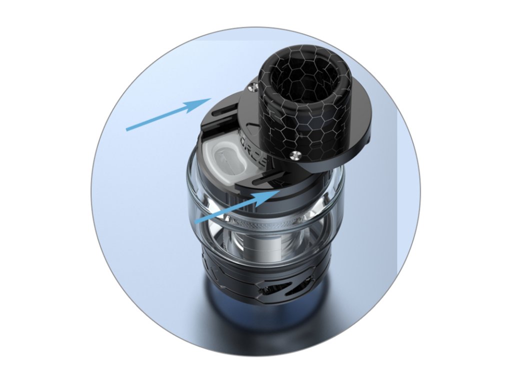 Atomizér Z Force Tank je opatřen jednoduchým systémem vrchního plnění. Jedním prstem tak vysunete uzávěr do strany a můžete začít plnit. Samotný otvor pro plnění je doplněn o silikonovou membránu, která zabraňuje možnému úniku e-liquidu během plnění. E-liquid do tanku doplníte během několika málo vteřin.