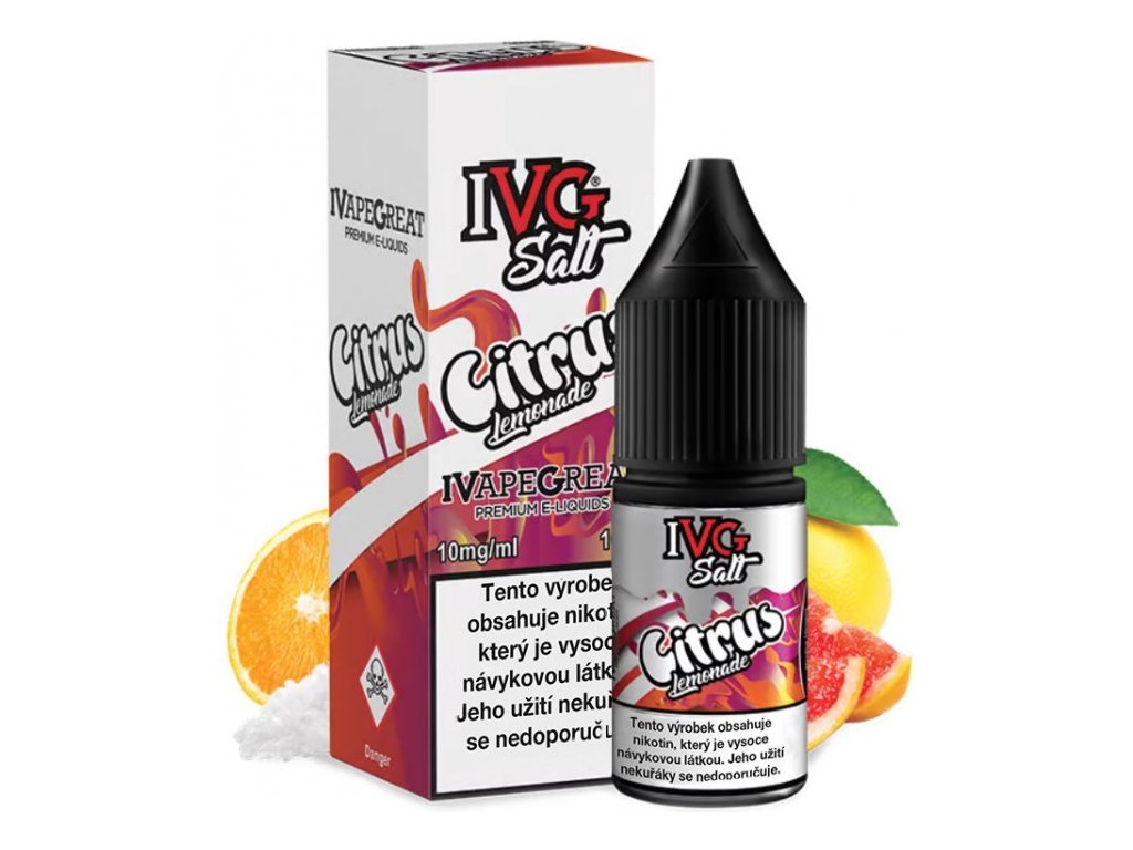 Osvěžující limonáda plná citrusových plodů... Prémiové britské liquidy IVG s nikotinovou solí v poměru 50VG/50PG. Liquidy SALT se od běžných liquidů odlišují tím, že mají nižší PH a obsahují stále více oblíbenou a žádanou nikotinovou sůl, díky které dochází k rychlejší a kvalitnější vstřebatelnosti = bez dráždivého pocitu v krku oproti klasickým liquidům.