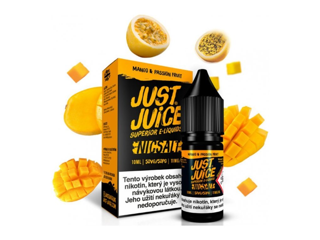 Šťavnaté, sladké a svěží exotické mango, jehož specifickou chuť umně dokresluje k dokonalosti přítomnost svěží a neodolatelné marakuji... Britský výrobce liquidů Just Juice představuje liquidy SALT, které se od běžných liquidů odlišují tím, že mají nižší PH a obsahují nikotinovou sůl, díky které dochází k rychlejší a kvalitnější vstřebatelnosti = bez dráždivého pocitu v krku oproti klasickým liquidům. Poměr 50VG/50PG