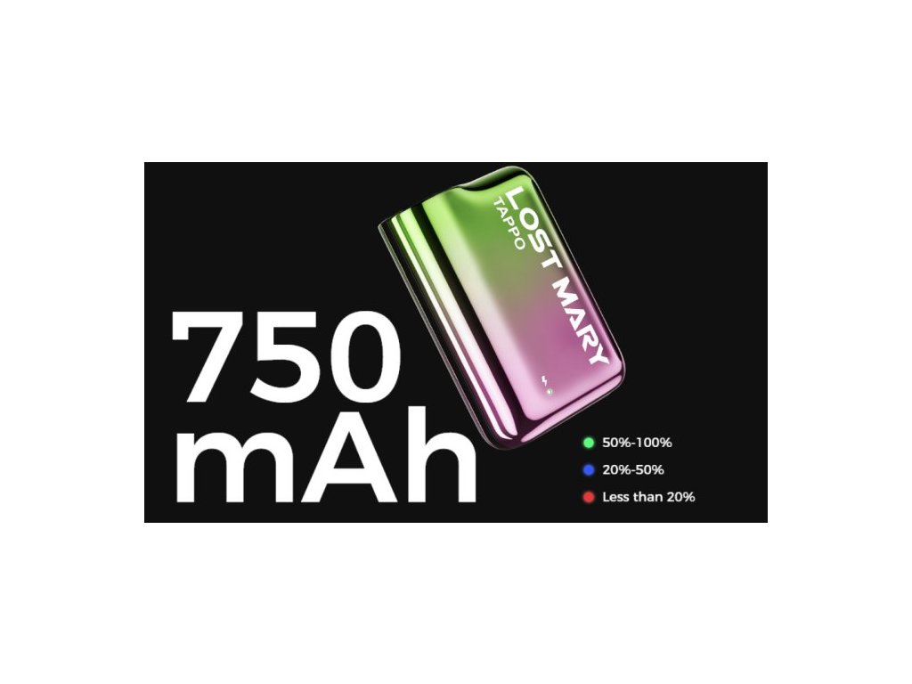 LOST MARY představuje ekologičtější a úspornější variantu svých jednorázových zařízení. Elektronická cigareta TAPPO disponuje vestavěným monočlánkem o kapacitě 750mAh s automatickým spínačem a USB-C portem pro rychlé nabití. Na vrchní straně ergonomické baterie se nachází prostor pro vložení předplněné cartridge TAPPO o objemu 2ml. Nyní už nemusíte po spotřebení liquidu vyhodit celou elektronickou cigaretu, ale stačí pouze vyměnit předplněnou cartridge. Tento dokonalý systém se již osvědčil u Elf Baru ELFA a vyjímečnost těchto zařízení podtrhává skutečnost, že oba systémy jsou navzájem plně kompatibilní. TATO SADA OBSAHUJE POUZE BATERII TAPOO.