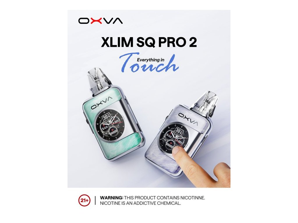 OXVA XLIM SQ PRO 2 představuje špičku mezi moderními pod systémy – elegantní zařízení, které v sobě spojuje technologické inovace a důraz na design. Díky dotykovému 1,09” HD displeji získáváte naprostou kontrolu nad svým vapováním: od přizpůsobení výkonu, sledování počtu potahů až po přístup k užitečným funkcím, jako je kalendář, svítilna nebo animace domovské obrazovky. Srdcem zařízení je výkonná vestavěná baterie o kapacitě 1600 mAh, která v ECO režimu zajistí provoz až na celý týden. Nabíjení probíhá skrze moderní USB-C konektor a plného dobití dosáhnete už za 45 minut. I přes své kompaktní rozměry nabízí XLIM SQ PRO 2 výdrž, která potěší i náročnější uživatele. Zařízení využívá cartridge z řady XLIM V2, V3 (Top Fill) i EZ, což zajišťuje skvělou kompatibilitu a široké možnosti výběru podle preferencí vapera. Díky technologii iCotton a preciznímu airflow systému si můžete být jisti věrnou chutí po celou dobu používání cartridge – až na 30 dní čisté chuti. Design přístroje navíc nezůstává pozadu – tělo je dostupné v několika stylových variantách, od decentních matných povrchů až po poutavé mramorové či lesklé motivy. Kompaktní rozměry, ergonomický tvar a kovový rám z něj dělají nejen výkonné, ale i velmi elegantní zařízení. OXVA XLIM SQ PRO 2 není jen vape. Je to osobní zážitek s dotekem luxusu, který se přizpůsobí vašemu životnímu stylu.