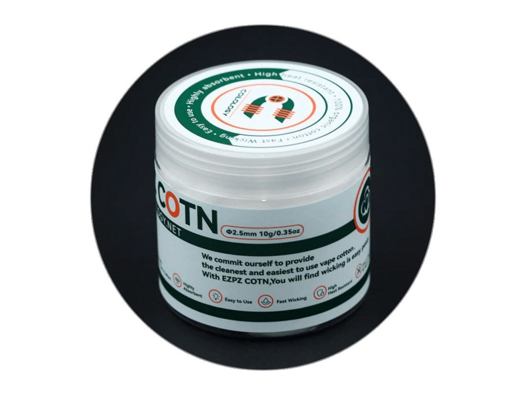 Přírodní vata Coilology EZPZ COTN obsahuje 100% kvalitní přírodní bavlnu. Přináší vysokou odolnost vůči vysokým teplotám a neobsahuje pesticidy a oleje. Pyšní se vynikajícími absorpčními vlastnostmi, skvěle se tak hodí pro všechny styly vapování. Vata je k dostání v praktickém plastovém boxu, ve kterém se nachází proužek s hmotností cca 10g a průměrem cca 2.5 mm, skvěle se tak hodí zejména pro menší spirálky s průměrem právě okolo 2.5 mm. Instalace vaty do vašeho atomizéru ještě nikdy nebyla snazší.