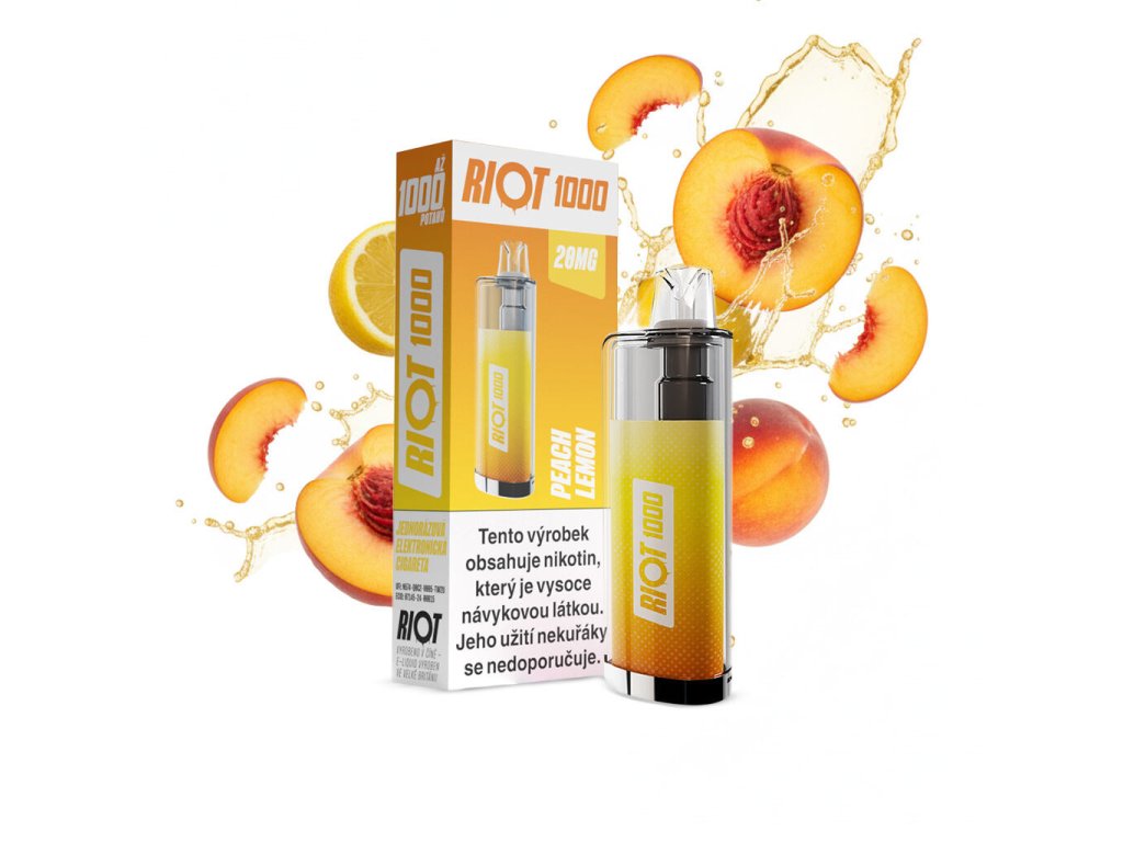 RIOT 1000 Disposable Pod Kit (Peach Lemon) intenzita nikotinu 20mg