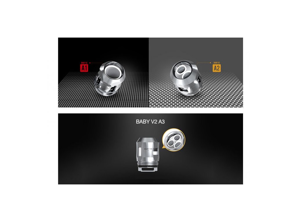 Druhá verze oblíbeného clearomizeru TFV8 Baby, který díky žhavicím hlavám Baby V2 posunuje tvorbou dýmu a autentickou chuť liquidu o patro výš. Tyto žhavicí hlavy se od ostatních modelů liší tím, že každá komora obsahuje organickou bavlnu překrytou Mesh spirálkou ,,síťovou mřížkou´´. Využívá systém horního plnění - po odsunutí vrchní části, plníte liquid otvorem přímo do těla clearomizeru o objemu 5ml. Celý clearomizer je plně rozebíratelný = snadná údržba. Regulace přívodu vzduchu pro nastavení optimální kouřivosti se nachází ve spodní části.