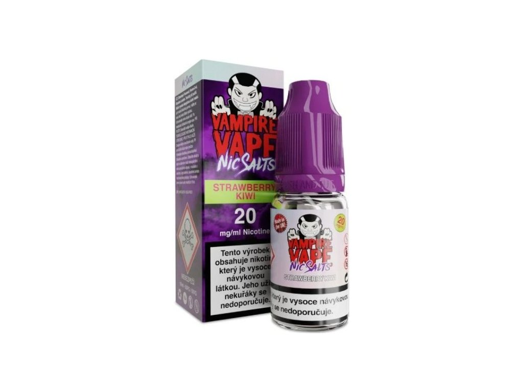 Vyladěná kombinace sladké jahody a exotického kiwi... Vampire Vape je celosvětově proslavený výrobce skvělých příchutí pro vaping. Právě nyní si Vaše oblíbené příchutě můžete užít ve formě e-liquidů s oblíbenou variantou nikotinu - NicSaltem. To znamená, že na Vás při vapování nečeká nepříjemný hit, ale potah je jemný a bez škrábání. Poměr VG/PG: 50/50