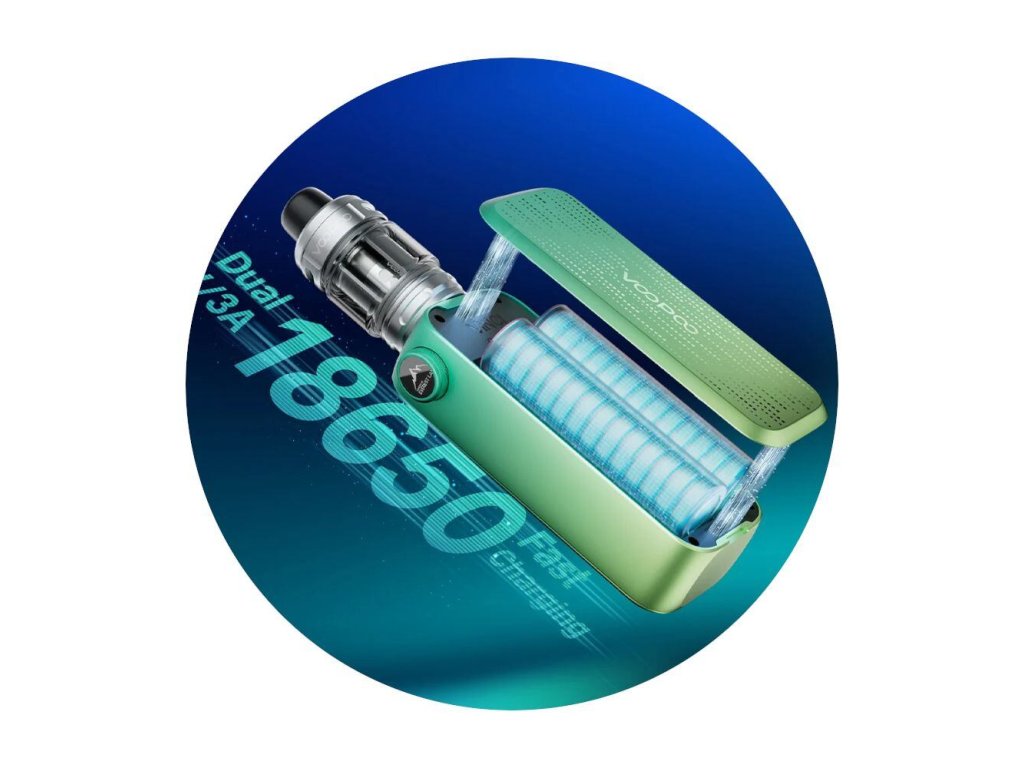 Tělo modu pod magnetickou krytkou ukrývá dva sloty pro vložení externích baterií typu 18650. Ty se postarají o extrémní výkon, jenž dosahuje až zmíněných 220 W. Mod tak s přehledem zvládá subohmové (nízkoodporové) vapování s pořádným návalem hustých mraků a vysoce intenzivním podáním chuti. Za zmínku stojí i přítomnost rychlého USB-C dobíjení s parametry 5V / 3A. Díky špičkové elektronice lze baterie dobíjet přímo v těle e-cigarety bleskovou rychlostí, a přitom se není třeba obávat o jejich životnost. Dokonce můžete i během nabíjení dál pokračovat ve vapování.