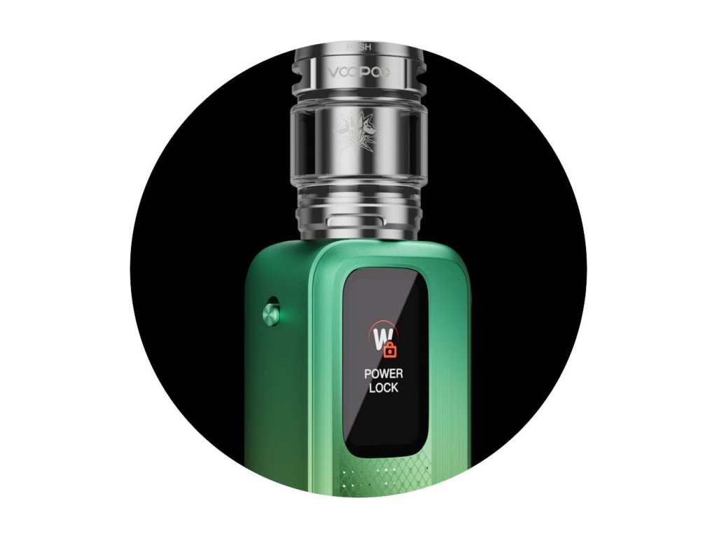 Namísto otravných kombinací pro zamykání a odemykání e-cigarety výrobce VooPoo zvolil mnohem praktičtější variantu v podobě bočního posuvného tlačítka, které je dokonce uživatelsky konfigurovatelné přes menu nastavení. K dispozici jsou dvě volby - Lock Switch a Power Lock. První z nich slouží pro deaktivaci otočného ovladače a zároveň tlačítka spouštění žhavení, čímž dojde ke kompletnímu uzamknutí zařízení. Druhá volba deaktivuje pouze otočný ovladač, takže je stále možné aktivovat žhavení a vapovat, ale nehrozí nežádoucí změna nastavení.