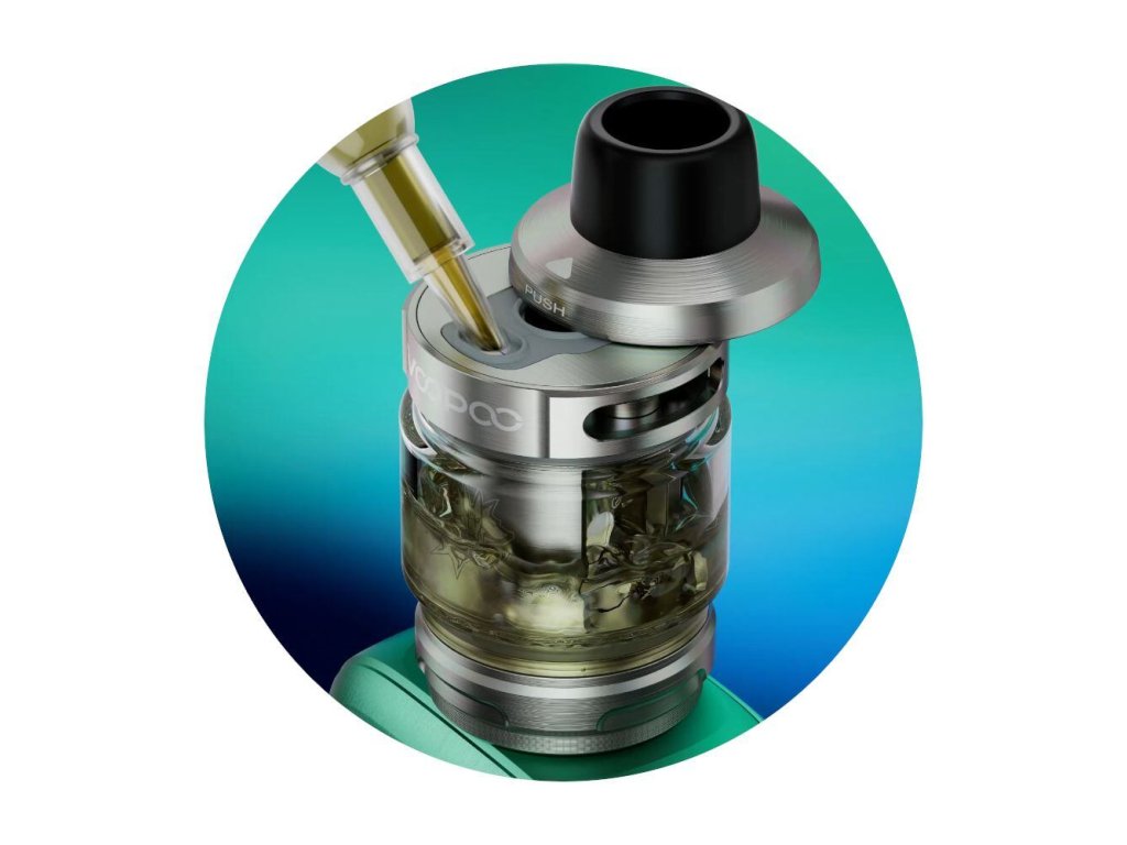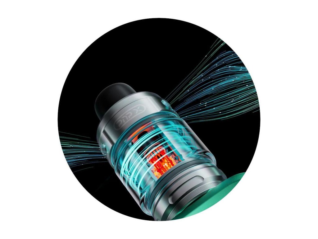 Mod je spárován s osvědčeným nerezovým tankem VooPoo UFORCE-X využívajícím výjimečnou řadu žhavících hlav PnP-X. Jedná se o subohmový (nízkoodporový) tank s objemem 5,5 ml (6,5 ml s přiloženým sklíčkem), univerzálním závitem 510 a plně nastavitelným prouděním vzduchu, který získal mnoho odborných hodnocení jako jeden z nejlepších a nejchutnějších tanků pro RDL a DL vaping. Je ideální volbou pro vysoce výkonné mody a uživatele, kteří si chtějí užít prvotřídní vapování přímo do plic. Díky snadné obsluze a promyšlené konstrukci jej ale ocení také méně zkušení vapeři.