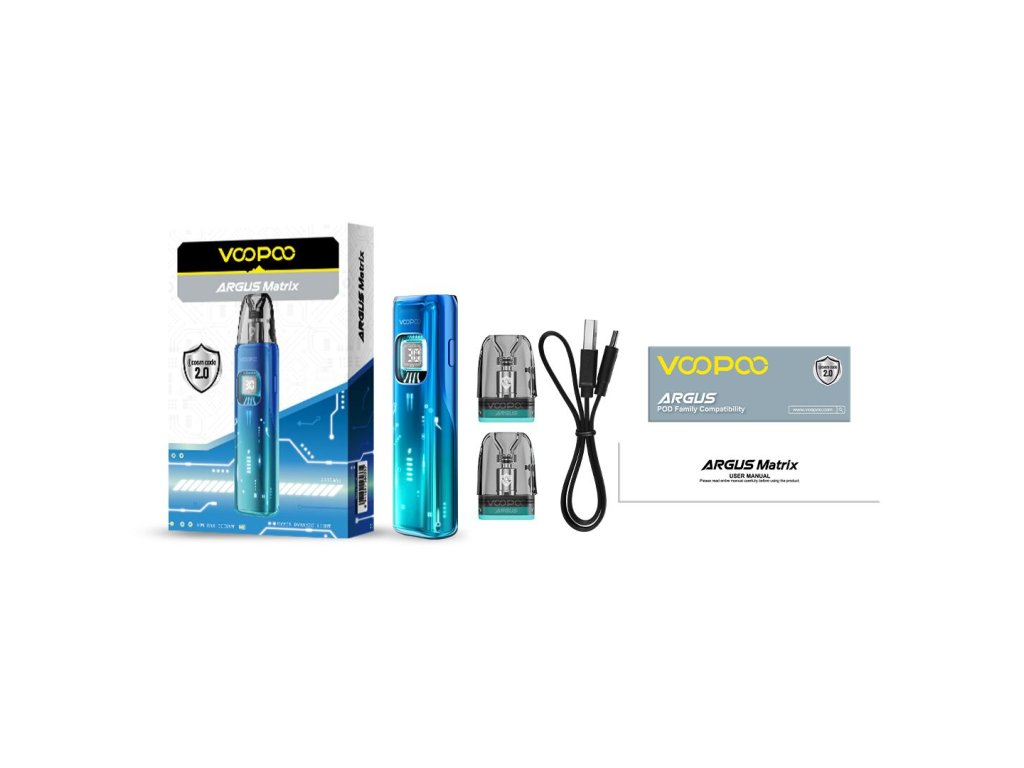 Argus Matrix, futuristický model z platformy VooPoo Argus, redefinuje vaping díky zahnutému full screen tělu a designu hledajícímu inspiraci v tištěných spojích a kyberpunkové estetice. Nádherně zpracovaný pod systém je určen všem příznivcům přístupu k odvážným estetickým změnám a obecně všem příznivcům MTL a RDL vapování, kteří se poohlíží po jednoduchém, vypiplaném a inovativním podu. Cartridge Argus Pod Top Fill V2 s technologií iCOSM CODE 2.0 zajistí nekompromisní příval chuti, jasnou chuťovou čitelnost a extrémně dlouhou životnost. Technologie postavená za účelem zvládání vysoké zátěže dnešních cartridgí posouvá zážitek z vapování do vyšších sfér. Ve spojení s integrovanou baterií 1350 mAh, strhujícím výkonem až 30W s možností regulace a jedinečným designovým provedením se Argus Matrix staví vysoko nad další představitele této legendární platformy.