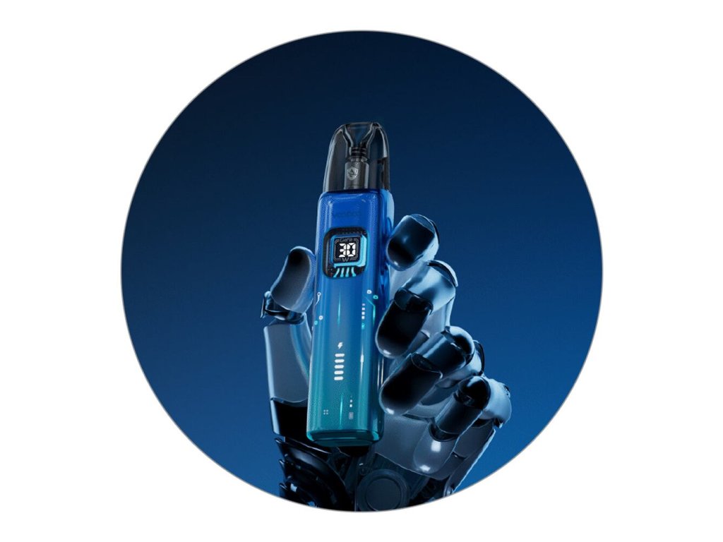 Přední část e-cigarety zdobí krásný IML full screen panel s futuristickým podsvícením. Podsvícení je inspirováno provedením tradičních tištěných spojů a dodává celé e-cigaretě naprosto unikátní a originální vzezření. Panel také mění své vizualizace při různých úkonech, jako je zapnutí a vypnutí, probuzení displeje a vložení cartridge. Pokud vám u modelu nebude toto podsvícení vyhovovat, nebo vám bude připadat příliš výrazné a extravagantní, můžete si ho jednoduše vypnout dvěma stisky tlačítka.