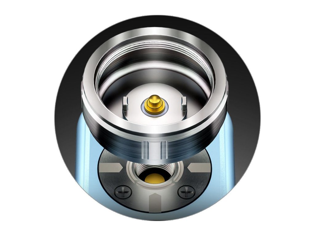 Výborným prvkem atomizéru je potom horní systém regulace vzduchu. Díky umístění v horní části je zajištěna plynulejší a efektivnější cirkulace vzduchu uvnitř atomizéru a zároveň je zamezeno možným únikům e-liquidu, jako tomu může dojít u atomizérů se spodním systémem airflow. Plynulá regulace přívodu vzduchu navíc umožňuje snadné přizpůsobení tuhosti potahování pro jakýkoliv styl vapingu.