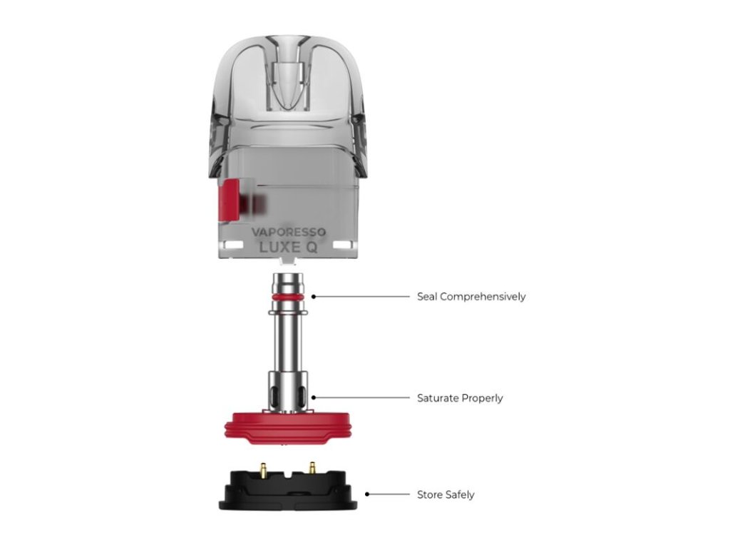 Náhradní cartridge pro elektronickou cigaretu Vaporesso LUXE Q2 Pod Kit a další zařízení disponuje základním objemem 3ml. Jedná se o kompletně vybavenou cartridge disponující integrovaným žhavící hlavou s moderním mesh pletivem pro skvělé podání chuti, rychlý náběh žhavení a optimální produkci páry. Cartridge lze použít jak se standardními nikotinovými a beznikotinovými náplněmi s poměrem PG50/VG50, tak také s náplněmi s nikotinovou solí. Disponuje pohodlným bočním plněním se silikonovou záslepkou.